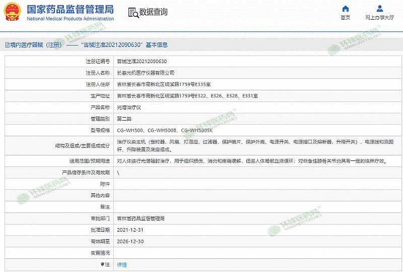 | 主要成分 | 治疗仪由主机(定时器、风扇、灯泡座、过滤器、保护镜片、保护外壳、电源开关、电源插口及熔断器、升降开关)、电源线和测距杆、升降装置及底座组成。 |