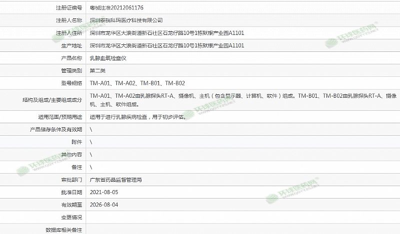 | 主要成分 | TM-B01由乳腺探头RT-A、摄像机、主机、软件组成。 |