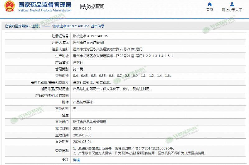 批准文号: 浙械注准20192140195 【验证真伪】