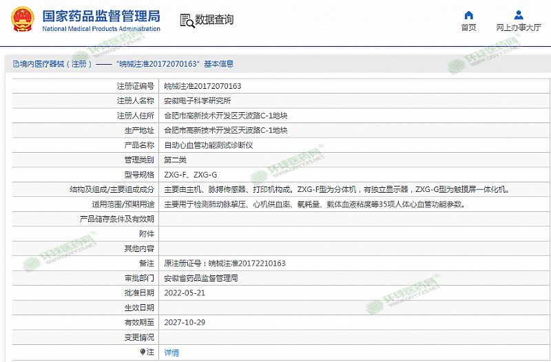 批准文号: 皖械注准20172070163 【验证真伪】