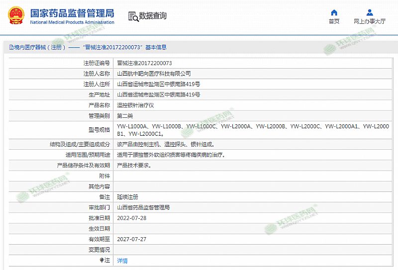 | 补充说明 | 16路温控银针治疗仪YW-L1000A YW-L1000A温控银针治疗仪(温控仪)主要为银质针在治疗软组织疼痛等病时,为银质针加热/检测/报警/定时及管理之用。温控银针治疗仪***机多路(16/24/32路),每路加热/测量***只银针,实现定温智能控制。温控银针治疗仪临床使用时须与银质针配合使用。温控银针治疗仪控制每路加热/检测头,把温度传送给该加热探头内的银质针,后到达病人患处。由于温度可以指定设置,因此根据使用银质针规格设置需要的温度,达到好的治疗效果。 有效期至 2027-07-27 |