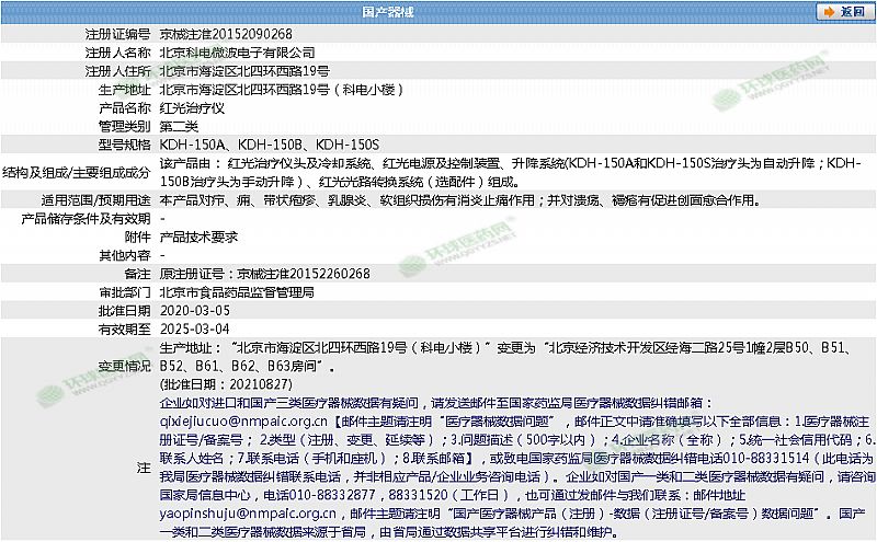 | 主要成分 | 该产品由:红光治疗仪头及冷却系统、红光电源及控制装置、升降系统(KDH-150A和KDH-150S治疗头为自动升降;KDH-150B治疗头为手动升降)、红光光路转换系统(选配件)组成。 |