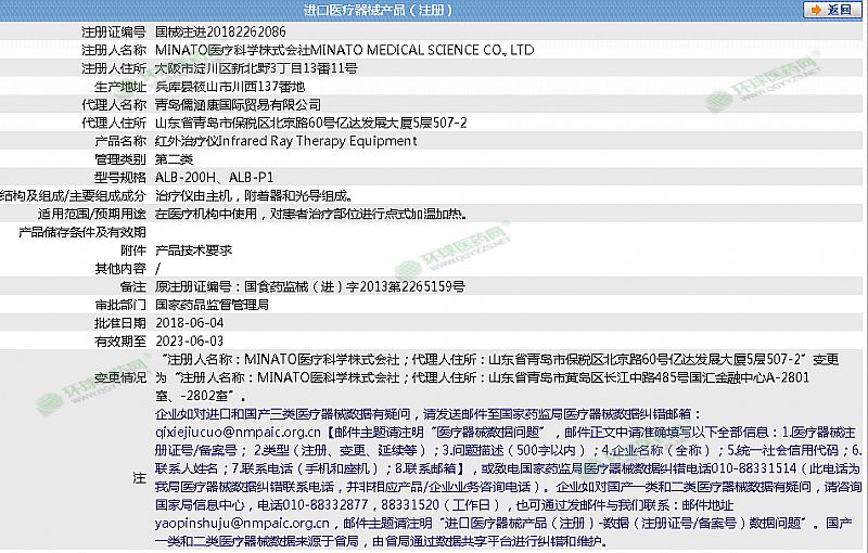 | 主要成分 | 治疗仪由主机,附着器和光导组成。 |