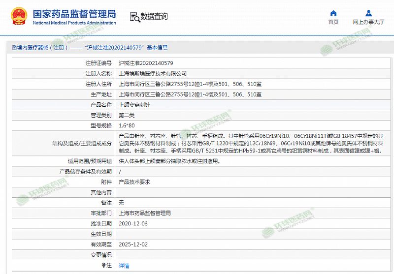 批准文号: 沪械注准20202140579 【验证真伪】
