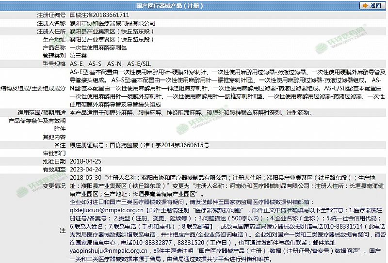 生产企业: 濮阳市协和医疗器械制品有限公司