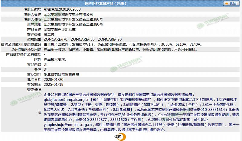 批准文号: 鄂械注准20202062868 【验证真伪】