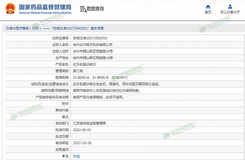 | 产品用途 | 适用范围:适用于临床对人体乳腺组织进行红外透照检查。 有效期至 2027-10-26 |