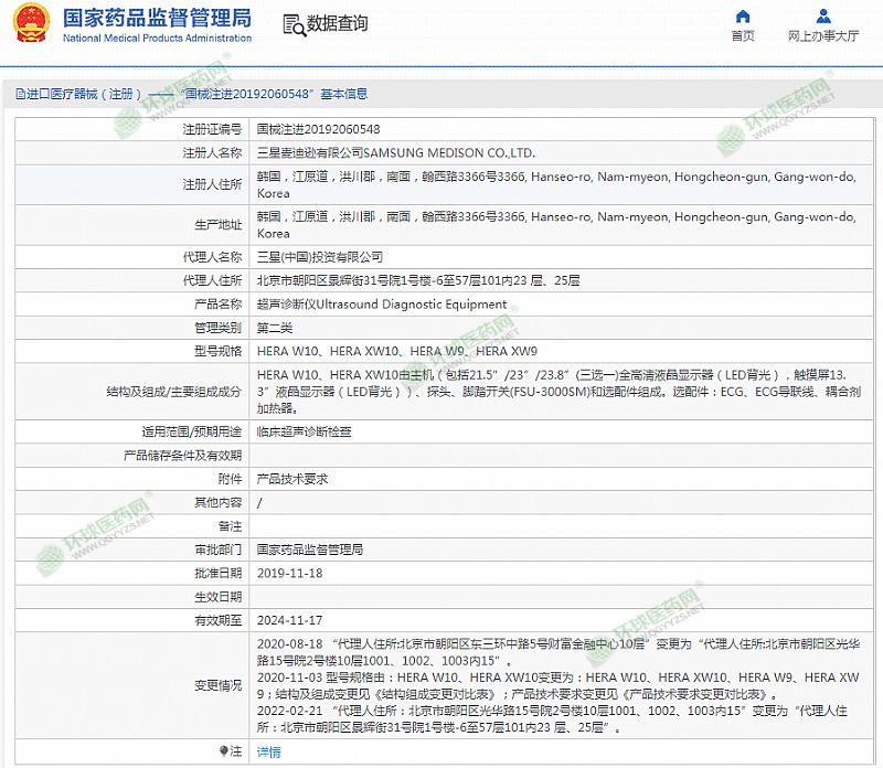 生产企业: 三星麦迪逊有限公司SAMSUNG MEDISON CO.,LTD.
