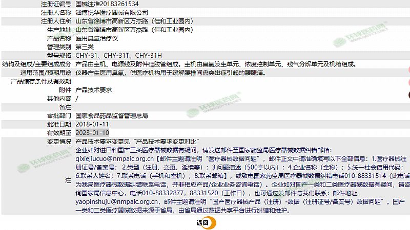 | 产品用途 | 仪器产生医用臭氧,供医疗机构用于缓解腰椎间盘突出症引起的腰腿痛。 |
