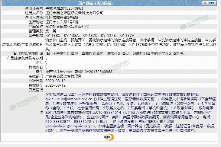 | 主要成分 | 治疗仪由主机、脚踏开关、雾化治疗组件的治疗连接导管、治疗手柄、冲洗治疗组件的冲洗连接管、冲洗手柄及尾气回收下水装置(选配)组成。KY-137A型、KY-137B型不带冲洗功能。该产品不包括冲洗头和治疗头。 |