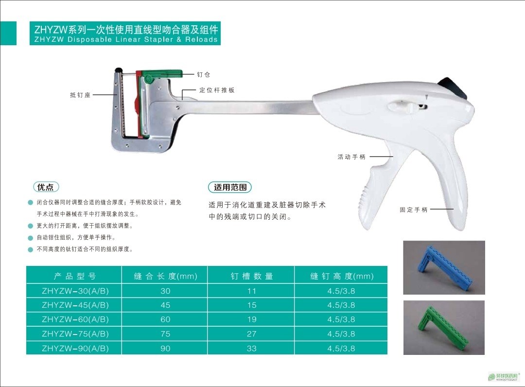 | 产品用途 | 适用于消化道重建及脏器切除手术中的残端或切口的关闭。 |