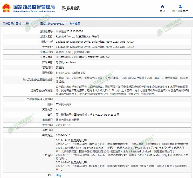 | 产品用途 | 适用范围/预期用途:该产品为患有呼吸功能不全,或呼吸衰竭,同时可能并发阻塞性睡眠呼吸暂停的患者提供呼吸支持;适用于非依赖型的,具有自主呼吸的患者;适用于成人或儿科(13kg及以上)患者;用于无创通气或者有创通气(有创通气要配合瑞思迈漏气阀使用)。该产品的操作包括固定式,如医院或家庭,或移动式,如轮椅使用。 有效期至 2024-05-15 |