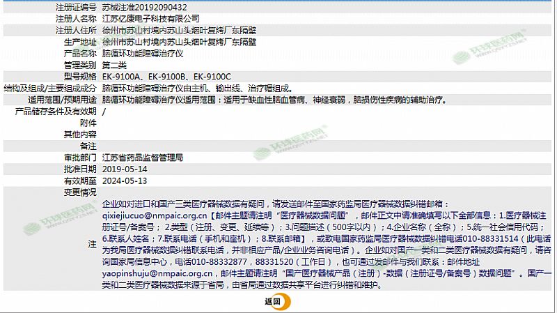 | 产品用途 | 脑循环功能障碍治疗仪适用范围:适用于缺血性脑血管病、神经衰弱,脑损伤性疾病的辅助治疗。 |