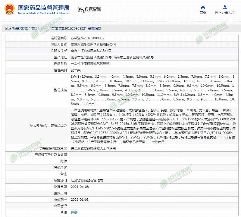 | 产品用途 | 供全麻或复苏时建立人工气道用。 有效期至 2026-01-03 |