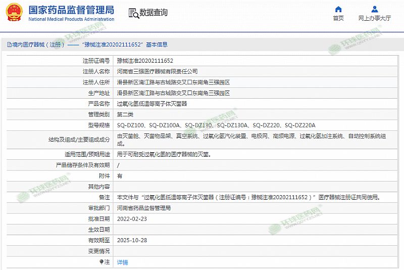 | 产品用途 | 用于可耐受过氧化氢的医疗器械的灭菌。 |