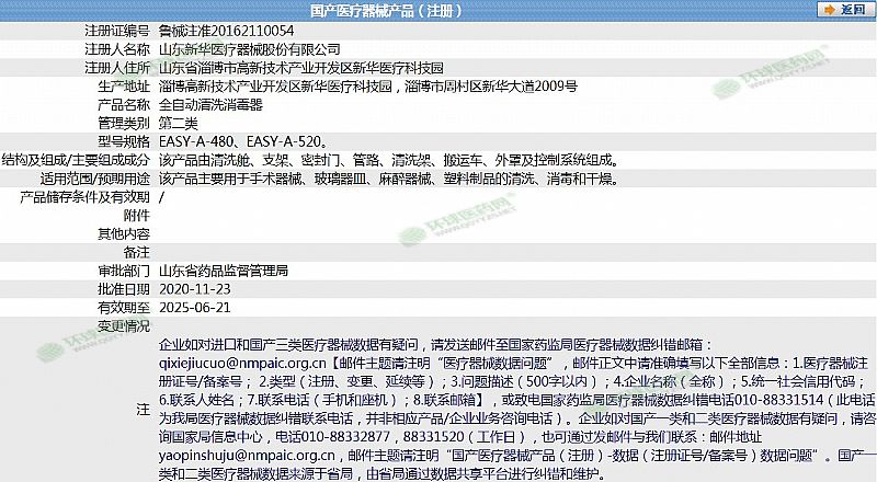 批准文号: 鲁械注准20162110054 【验证真伪】