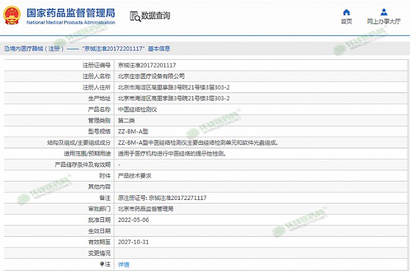 | 产品用途 | 适用于医疗机构进行中医经络的提示性检测。 |
