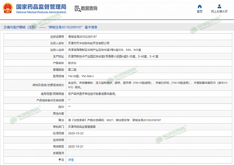 | 补充说明 | 用于采集脉象信息,通过先进的无***气动加压配合高精度防过载传感器**模拟中医切诊指法,采集分析脉象的位、数、形、势特征,嘴终智能分析出单脉与相兼脉类别和时-频-空域几十种脉象参数并输出标准的脉象图。同时可记录和跟踪不同时期的脉象特征变化,对疾病的疗效评估具有重要的参考价值,为健康状态的辨识、干预效果的评价提供客观化依据。 应用领域:中医治未病服务、中医医联体、中医基层医疗服务、中医体检、健康小屋、中医教学、科学研究、大健康产业等。 有效期至:2025-10-21 |