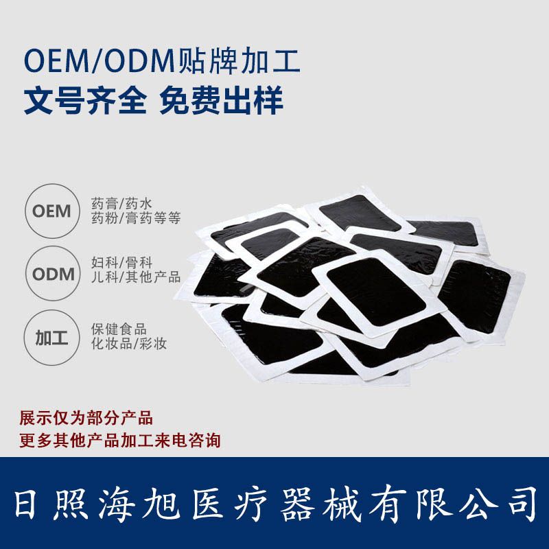 | 补充说明 | 日照海旭医疗器械有限公司承接黑膏药、膏药代加工生产,膏药是我们生活常见使用比较普及方便的贴剂,涉及骨科膏药、妇科、儿科、男科等销量良好操控**空间大,全国招商各地区代理商量大从优政策,满足客户不同要求定制欢迎来电咨询了解进一步详情。 |