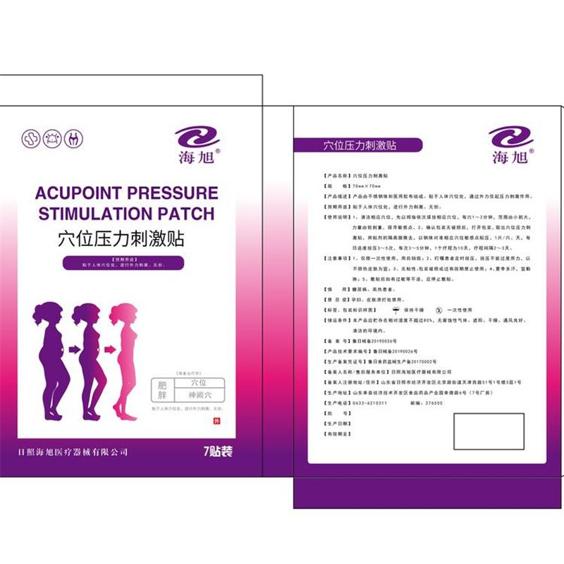 | 补充说明 | 【规 格】可根据客户需求进行定制 【使用方法】减肥贴的使用方法:临睡前贴早上取下来,一贴贴8-12个小时左右;男女通用;对胶布过敏者,可以只贴中间咖啡色的部分,或者贴之前先涂抹点消炎抗过敏的膏药;女性例假期间不要贴;哺乳期女性等小孩满月之后可以使用,40天为一个疗程。 【销售包装】根据客户需求定制 运输包装】根据客户需求定制 【经销企业】日照海旭医疗器械有限公司单县分公司 |