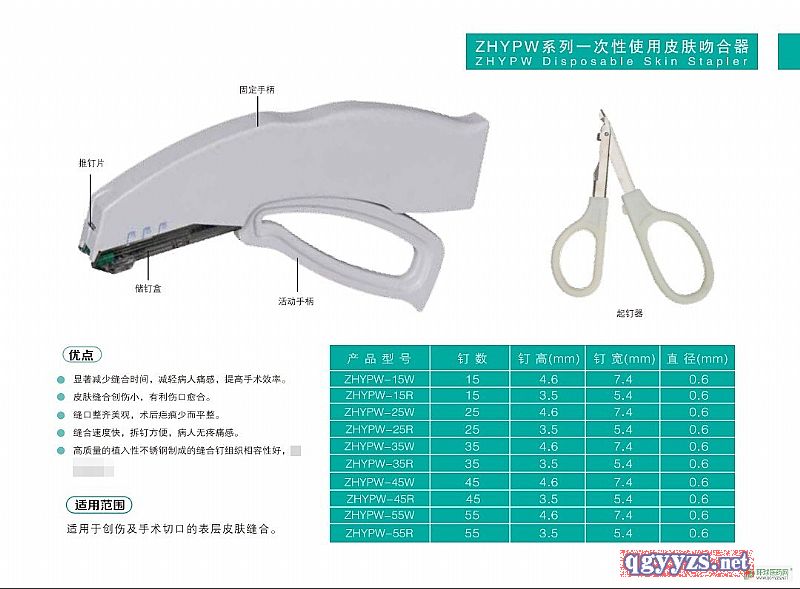 | 产品卖点 | 1**减少缝合时间,减轻病人痛感,提高手术效率。 2皮肤缝合创伤小,有利于伤口愈合。 3缝口整齐美观,术后疤痕少而平整。 4缝合速度快,拆钉方便,病人无疼痛感。 5高质量的植入性不锈钢制成的缝合钉组织相容性好。 |