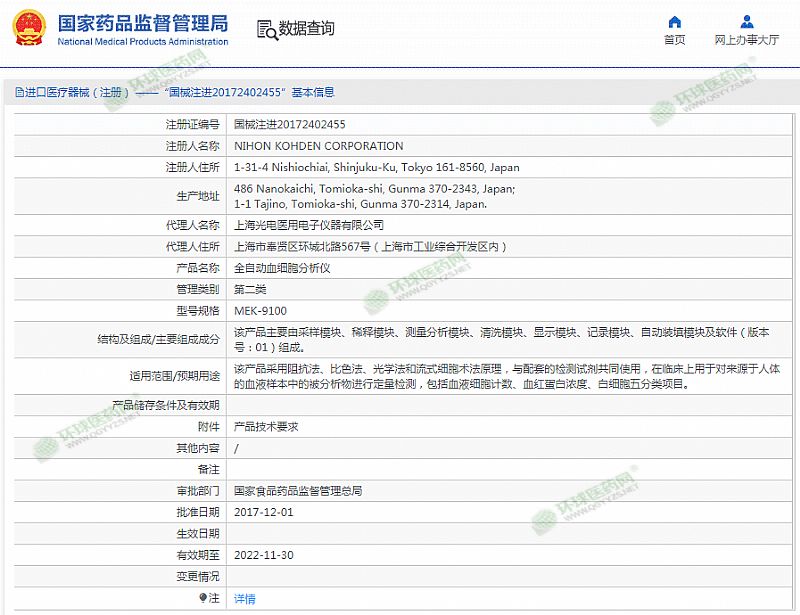 | 产品用途 | 该产品采用阻抗法、比色法、光学法和流式细胞术法原理,与配套的检测试剂共同使用,在临床上用于对来源于人体的血液样本中的被分析物进行定量检测,包括血液细胞计数、血红蛋白浓度、白细胞五分类项目。 有效期至 2022-11-30 |