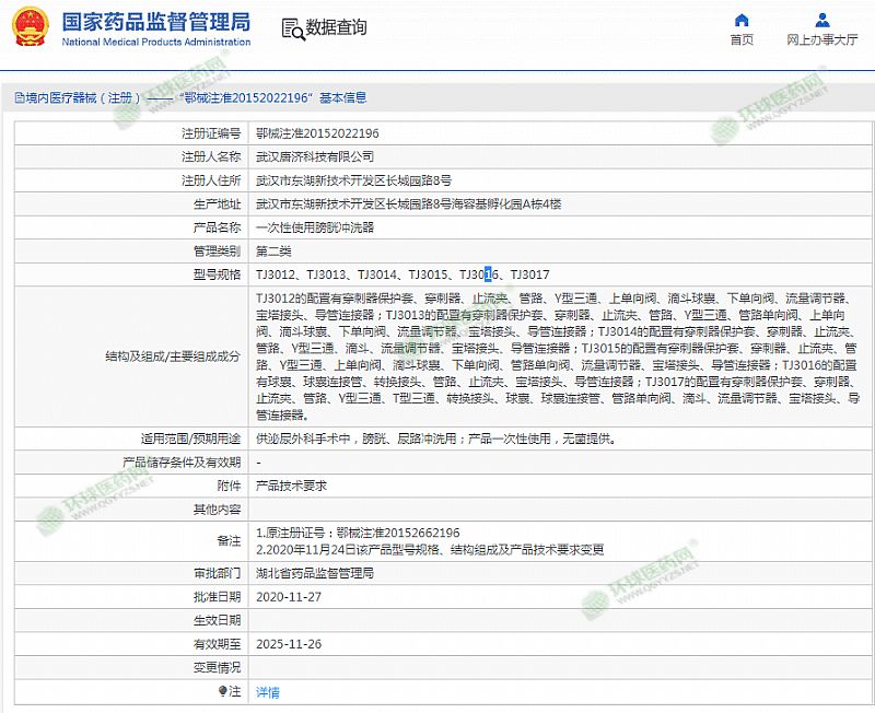 | 产品用途 | 一次性使用膀胱冲洗器 有效期至 2025-11-26 |