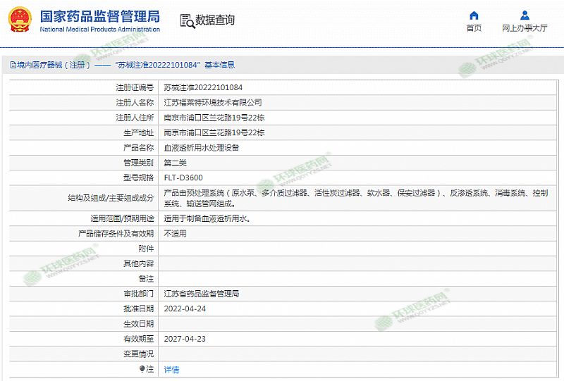 | 产品用途 | 用于制备多床血液透析和相关治疗用水。 有效期至 2027-04-23 |