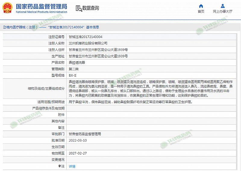 | 产品用途 | 用于鼻腔冲洗,保持鼻腔湿润,辅助鼻腔黏膜纤毛恢复正常运动等日常鼻腔的卫生护理。 有效期至 2027-02-27 |