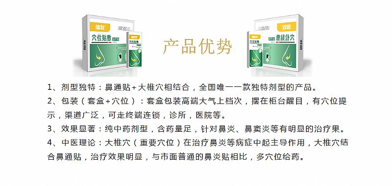 | 功能主治 | 产品特点1、采用水刺无纺布,易贴易揭没有残留,过敏率低能有效保护皮肤。2、中药制成,含药量足,针对鼻炎、鼻窦炎等病症有明显效果。3、鼻炎贴(针对穴位)贴敷方便,减轻不必要的疼痛,舒适感较强4、适用范围广,婴幼儿、儿童、成人均可使用。5、迎香穴(鼻梁处)与大椎穴(颈椎部)双重治疗,促进局部血液循环,药效持久,吸收快速 |