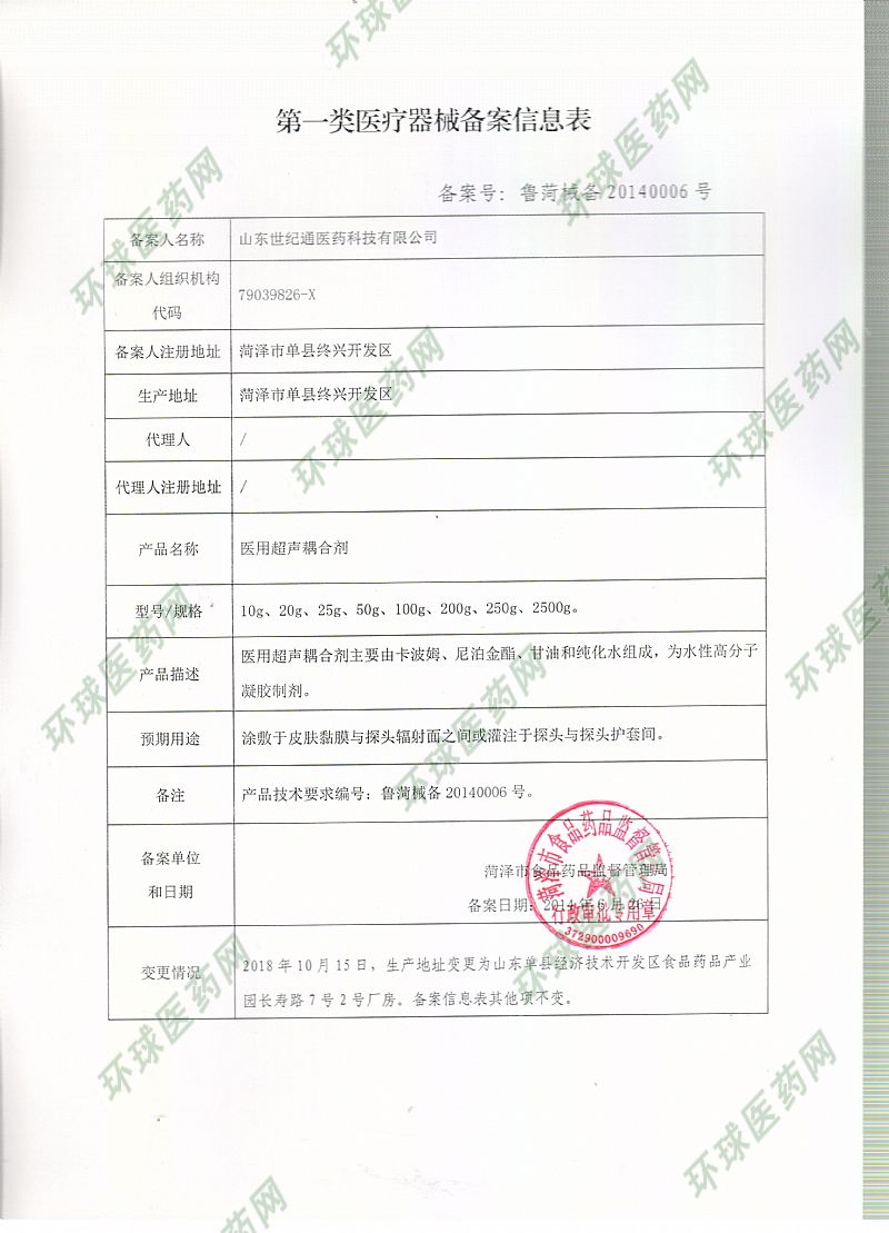 | 产品用途 | 【组成】医用超声耦合剂主要由卡波姆、尼泊金酯、甘油和纯化水组成,为水性高分子凝胶制剂。 【适用范围】在超生诊断和治疗操作中,医用超声耦合剂用作探头(或治疗头)与皮肤之间的透射媒质。 【包装规格】20g/支×400/箱 产品优势: 1、使用方便,不必重复涂擦,节省诊断时间,防止疾病交叉感染。 2、不刺激皮肤黏膜,不易引起致敏反应,能够有效降低医用超声探头在患者间交叉使用而增加的感染机率3、无腐蚀,对探头无损伤,耦合性能好,水溶性凝胶无污染易清除。 4、与人体组织声速相等不致超声波束形状失真;衰减系数很小,不致降低信噪比,有利于检出弱回波信号;与人体组织声特性阻抗近似相等,反射损失小。 5、具有良好的热稳定性涂布后在较长时间内不干化,保持黏性和粘附性,以便探头滑移顺畅。 |