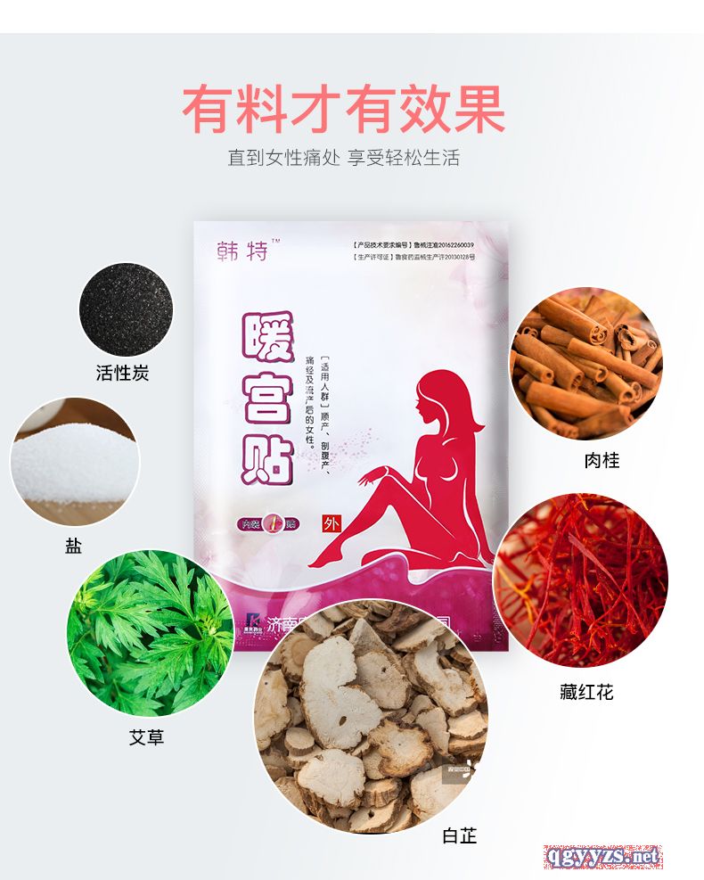 | 产品用途 | 产品构成 该产品由发热袋和外袋组成。外袋由敷膜无纺布和含有压敏胶的无纺布及硅油纸制成。 适用范围 适用于顺产、剖腹产、痛经及流产后的女性。 产品优势 1.改善血液循环,促进血管、子宫正常收缩,加快子宫内组织修复.预防产后“月子病”。 2、散寒、暖宫化瘀,治疗急慢、性盆腔炎、附件炎及妇科炎症,月经不调、痛经、顺产、剖宫产及流产后女性腹痛等。 韩特暖宫贴 [结构性能]该产品由发热袋和外袋组成.外袋由覆膜无纺布和含有压敏胶的无纺布及硅油纸制成。 [适用范围]适用于产后暖宫 [禁忌症]皮肤病、糖尿病、急性期炎症患者、孕妇下腹部、皮肤溃烂处禁用 [贮存]密闭、置阴凉干燥处保存。 [规格]99mm*11mm*1*2袋 [生产单位]山东朱氏药业集团有限公司 [生产地址]山东单县经济开发区 [生产许可证]鲁食药监械生产许20140113号 |