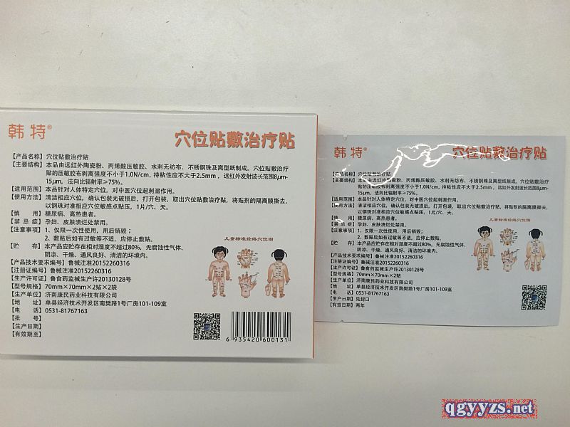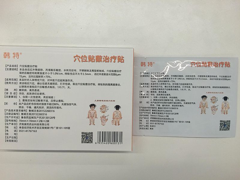 | 主要成分 | 本品针对人体特定穴位,对中医穴位起刺激作用。 |