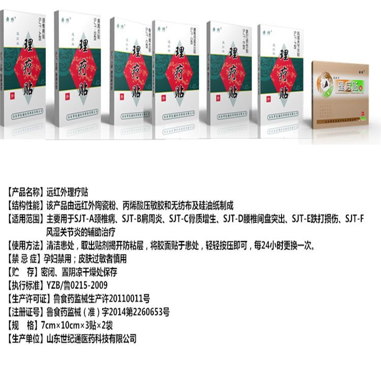 | 产品用途 | 远红外理疗贴运用远红外疗+磁疗+药疗的治疗手段,对颈椎病、肩周炎、骨质增生、腰椎间盘突出、风湿关节炎、跌打损伤起辅助治疗的作用。 |