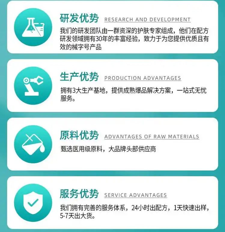 7、品类齐全:300多款成熟配方(妆字号、械字号、消字号)免费打样