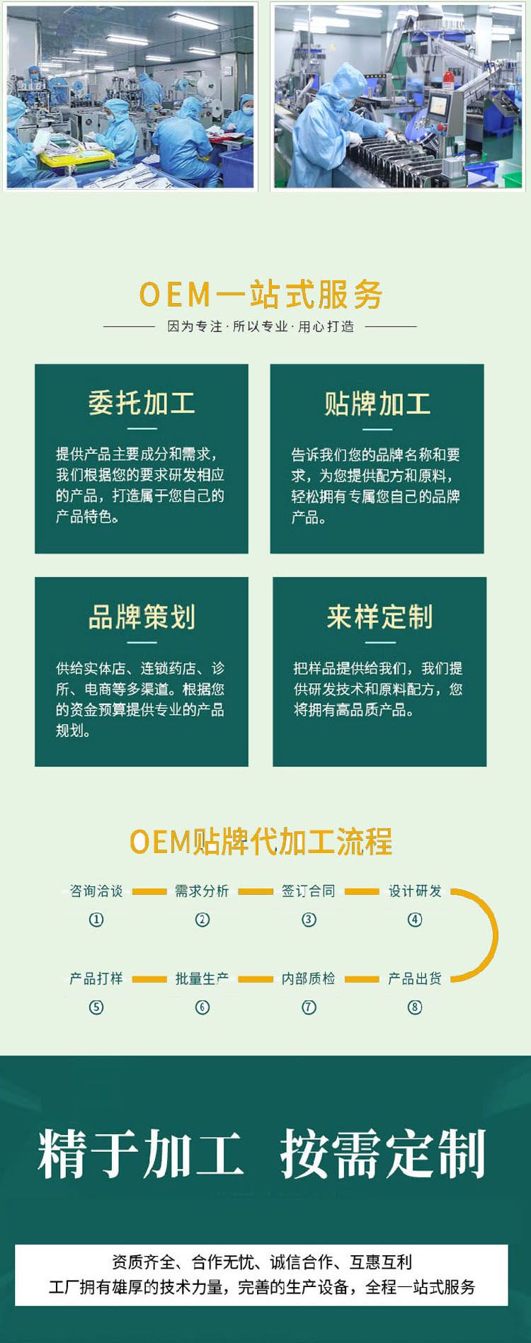 | 补充说明 | 贴代牌加工,形状规格大小可定制 产品系列:各类贴剂、膏剂、膏药、消毒消用杀品、化妆品、保健食品、日化用品、保健产品、临床产品、耗材列系等 |
