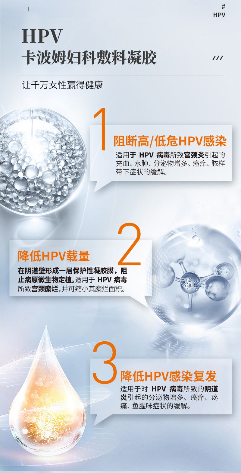 | 作用机理 | 在阴道壁形成一层保护性凝胶膜,阻止病原微生物定植。适用于HPV病毒所致宫颈炎(宫颈糜烂)引起的充血、水肿、分泌物增多、瘙痒、脓样带下症状的缓解,并可缩小其糜烂面积。同时适用于对HPV病毒所致的阴道炎引起的分泌物增多、瘙痒、疼痛、鱼腥味症状的缓解。 |