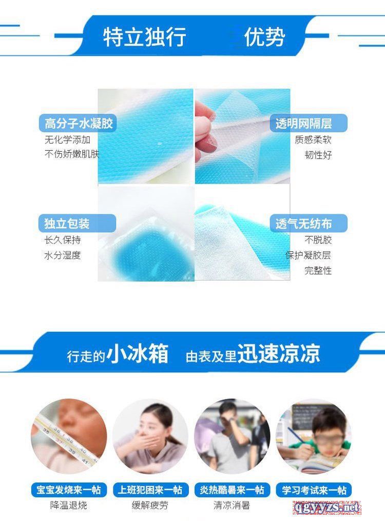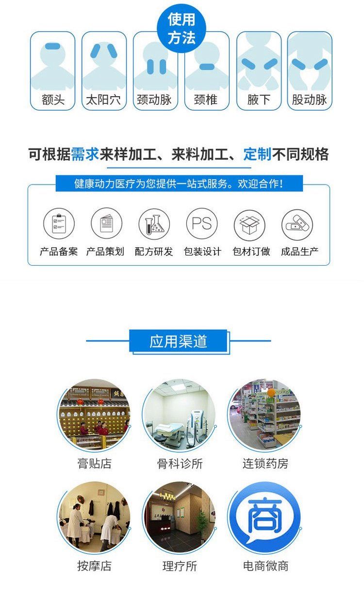 | 产品用途 | 用于物理退热、冷敷理疗,适用于成人及儿童身体局部体表降温。 |