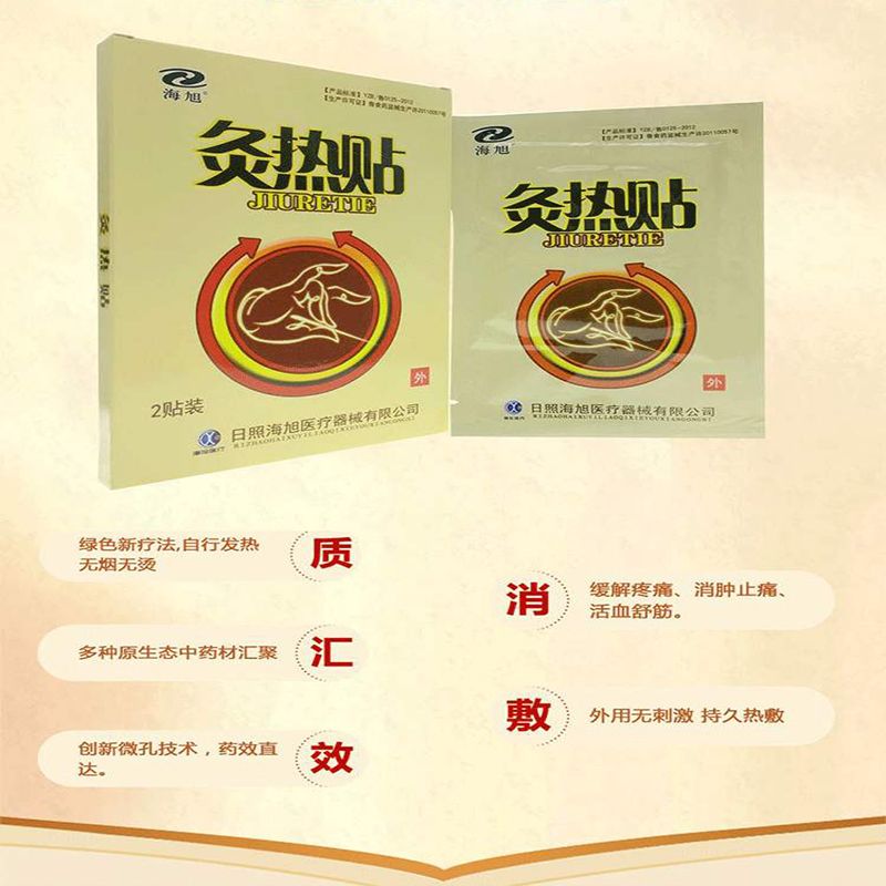 | 产品卖点 | 风湿类外用贴膏-日照海旭灸热贴一、海旭灸热贴是穴位贴敷法。 |