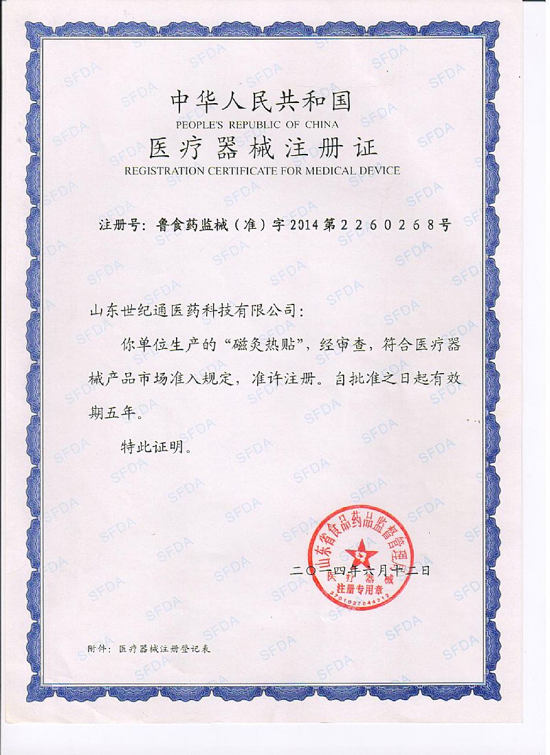 批准文号: 鲁械注准20152090308 【验证真伪】