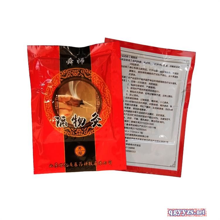| 使用方法 | 确认包装无破损后,打开包装,取出隔物灸,将隔离膜撕去,按照传统隔物灸疗法贴于患处,至不再发热后更换。 |