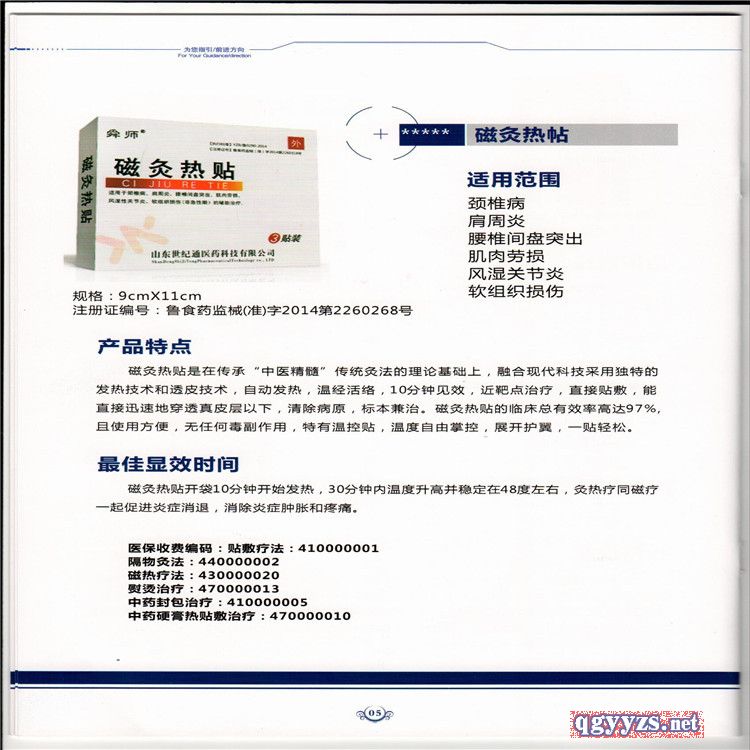 | 产品用途 | 临床上针对颈椎、肩周炎、腰椎间盘突出症、膝关节滑膜炎、胃寒、腿酸、腿痛、小腹冰凉、前列腺炎、痛经、妇科疾病、四肢冰凉有缓解效果。 |