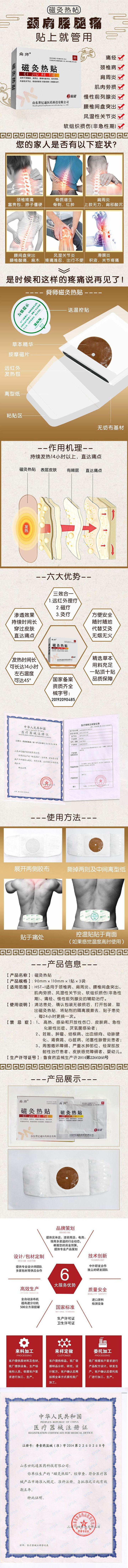 | 补充说明 | 磁灸热贴贴牌代加工厂家,拥有国际先进的生产线,一类、二类文号齐全,一站式OEM服务,可代理,可贴牌代加工,国家标准,品质可靠,可代为注册商标。 |