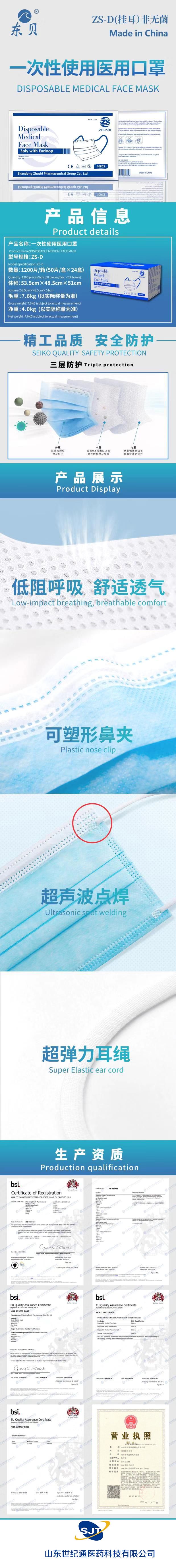 | 产品卖点 | 山东世纪通东贝一次性使用医用外科口罩,生产厂家,底价招商,量大从优,质量可靠有保障! 现货,现货,现货!!物美价廉,欢迎咨询! |