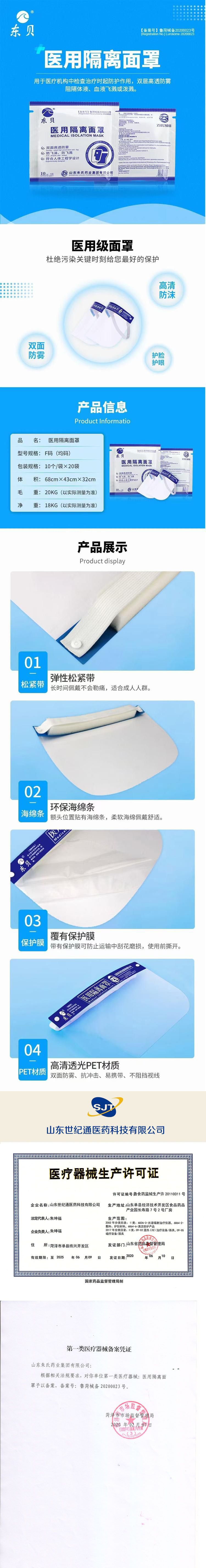 | 产品名称 | 医用隔离面罩 |