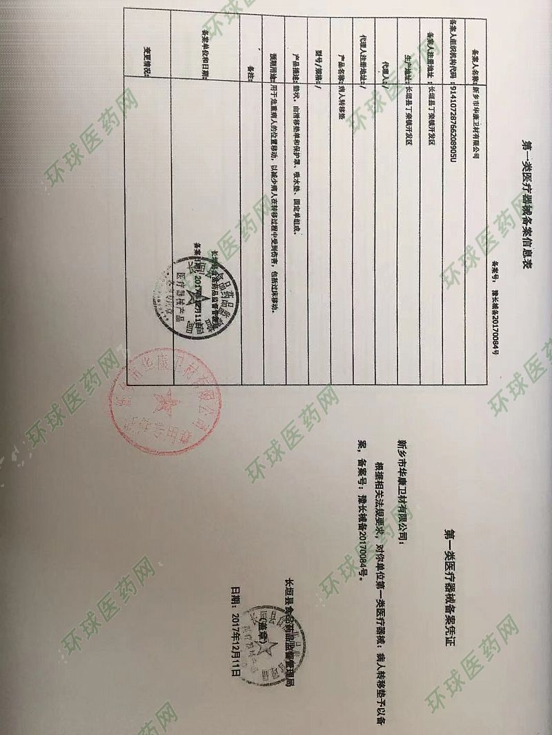 批准文号: 豫长械备20170084号 【验证真伪】