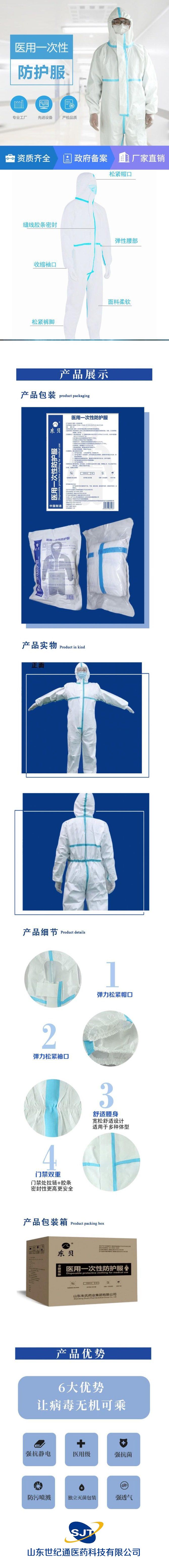 | 补充说明 | 【注意事项,警示及提示性说明】 1,本产品为无函、一次性使用产品,有效期三年; 2、本产品只限于一次性使用,打开包装后应立即使用,使用时间不超过24小时,用 后应焚烧处理。 3,穿着前如发现破损或拉链、缝线等任何部位有不妥之处,则不可使用 4,防护报应避免长时间与化学物质按触。 5、本产品无阻燃性。 |