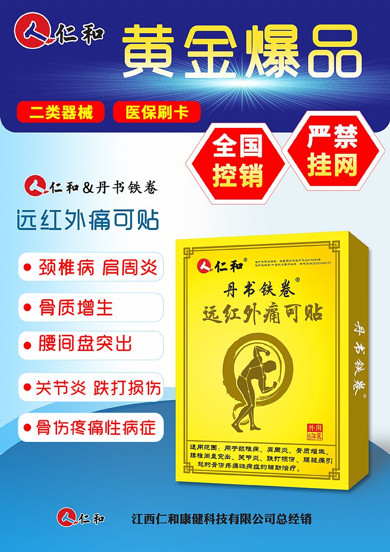 | 产品卖点 | 仁和品牌,控销市场,用于颈椎病,肩周炎,骨质增生,腰间盘突,关节炎,跌打损伤,腰腿疼痛性病症的辅助治疗 |