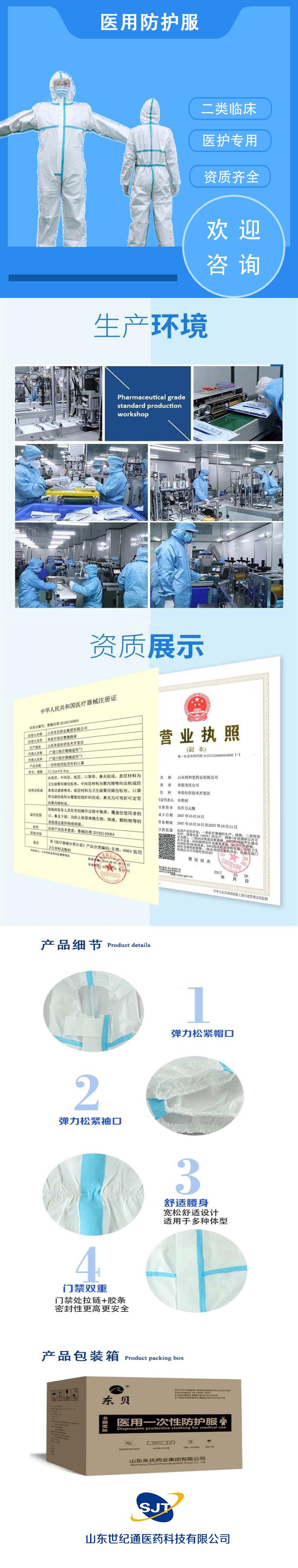 | 产品卖点 | 医用防护服生产厂家山东世纪通医药科技,正规器械类文号,临床连锁药房供应,百万级生产车间,生产实力强大,产品品质稳定,供货量充足,文件资质齐全,可以出口,详询庞龙18888366188 |