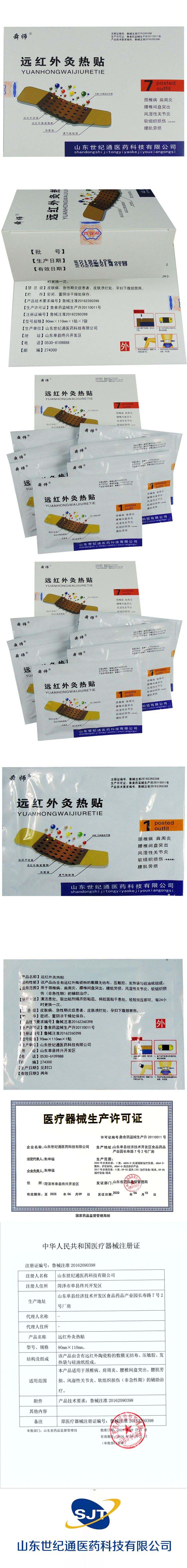 | 产品卖点 | 山东世纪通医药科技有限公司经过几年的发展,已经拥有临床产品隔物灸、远红外理疗贴、磁疗贴、热疗贴、穴位敷贴、水凝胶冷敷贴;新剂型产品透皮贴、沙蒿子透皮贴、足贴等多种剂型贴剂产品。公司承接贴剂贴牌、黑贴剂加工等业务,产品疗效卓著,畅销省内外,久享盛誉。形成了以销售过亿产品,过千万产品,迅速成长产品为主导的丰富的明星产品群,为企业长久的发展奠定了扎实的产品线基础。 |